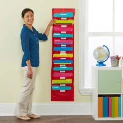 Store and organize lots of materials in a little space with this handy pocket chart. Holds activity sheets, assessments, student folders, center materials, lesson plans, school-home communications, books, magazines and more.