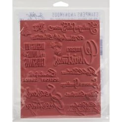 These red rubber stamps come mounted on cling foam so you can use them with any acrylic block. Great for using with Tim’s signature distressing techniques! Stamps come on a 3-hole punched sheet for easy storage. This package contains an assortment of cling rubber stamps mounted on an backing sheet.